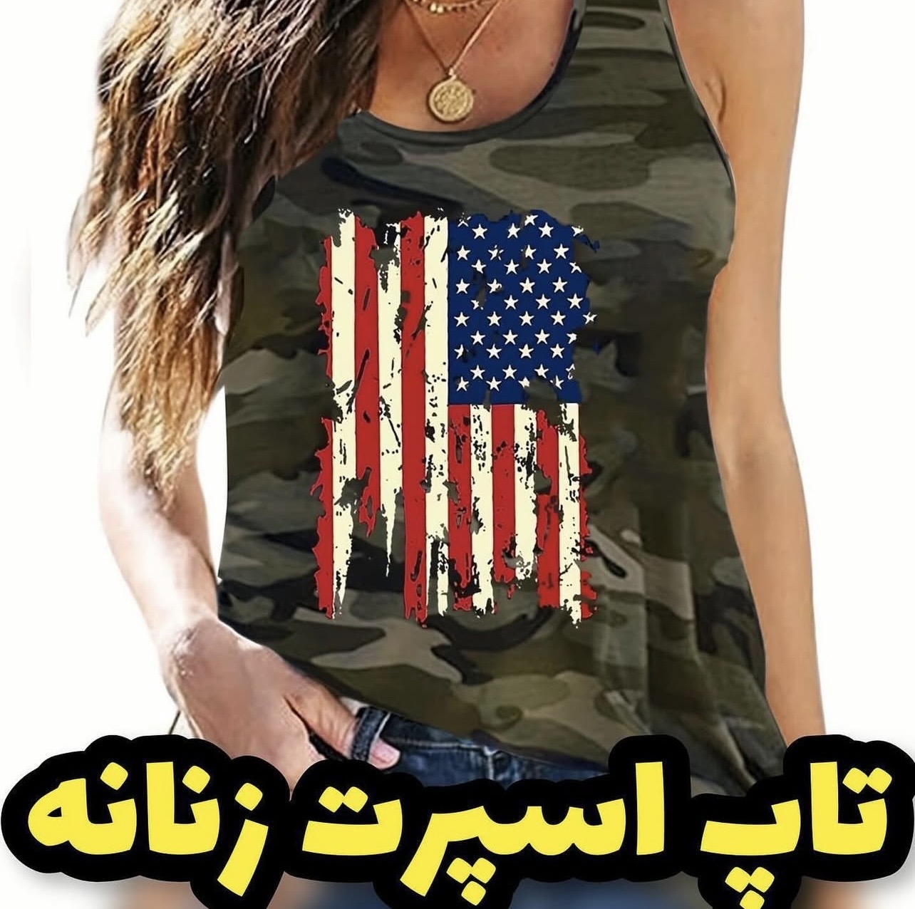 تاپ ورزشی و اسپرت زنانه طرح پرچم آمریکا(چریکی) وارداتی باکیفیت