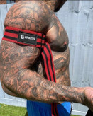 • کش کاتسو را دور رانها ببندید و یک کش مقاومتی بالای زانوها قرار دهید.