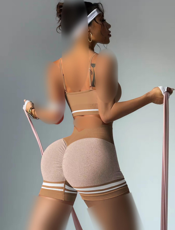 ست ورزشی زنانه نیمتنه و شورت اسکرانچی