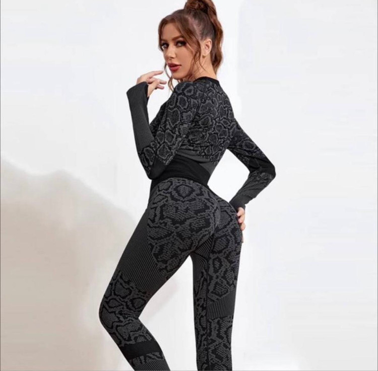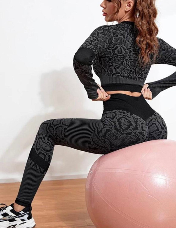ست کراپ و لگ زنانه فینگردار طرح اسنیک | پشت چین‌دار فرم‌دهنده